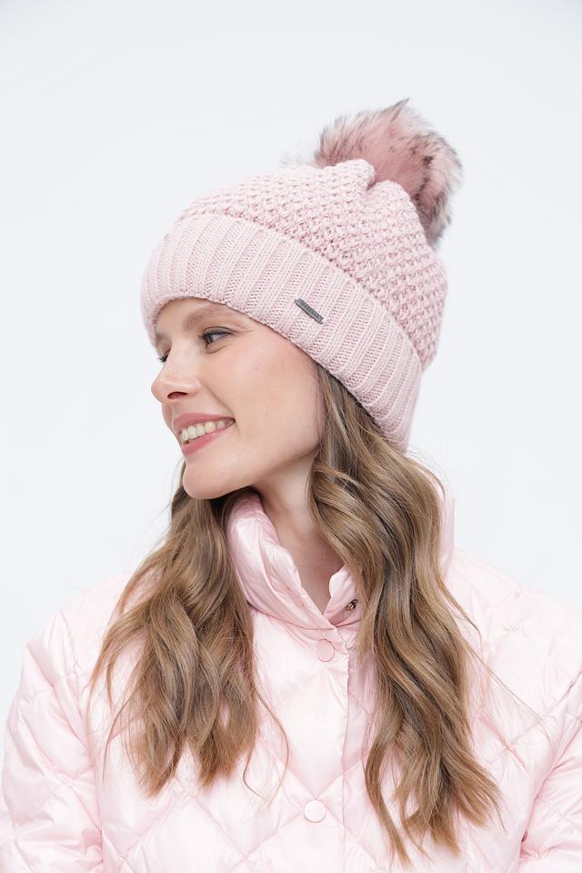 Женская шапка Wegener нежно-розового цвета с меховым помпоном – стильный и тёплый аксессуар для зимнего сезона. Изготовлена из мягкого полиакрила с добавлением полиамида для долговечности. Состав: полиакрил 90%, полиамид 10%