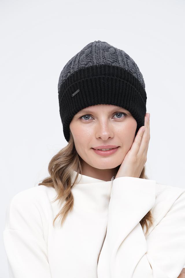 Женская шапка Wegener выполнена в сочетании чёрного и серого цветов с фактурным вязанием. Модель дополнена небольшим металлическим логотипом. Изготовлена из мягкого полиакрила, обеспечивающего комфорт и тепло. Состав: полиакрил 100%