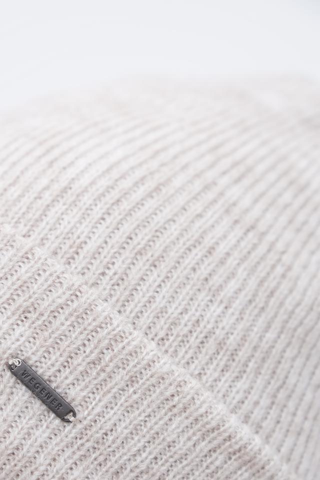 Шапка имеет классический дизайн с плотной вязкой, которая хорошо держит форму. Небольшой металлизированный логотип бренда Wegener деликатно размещен спереди, добавляя шапке изысканности.