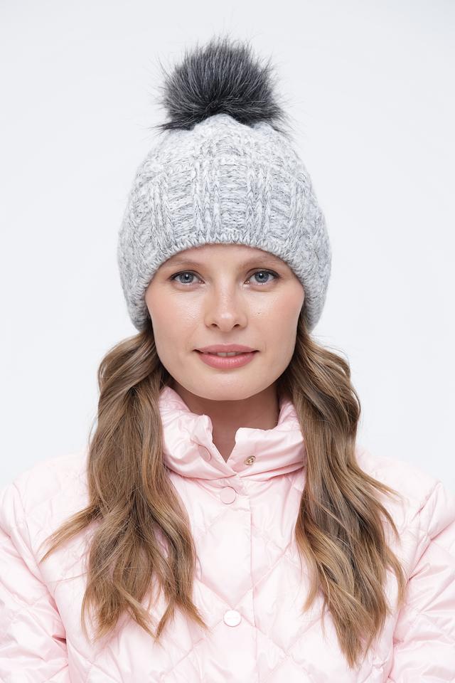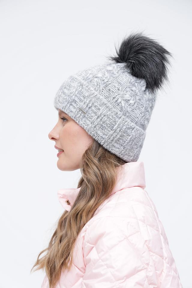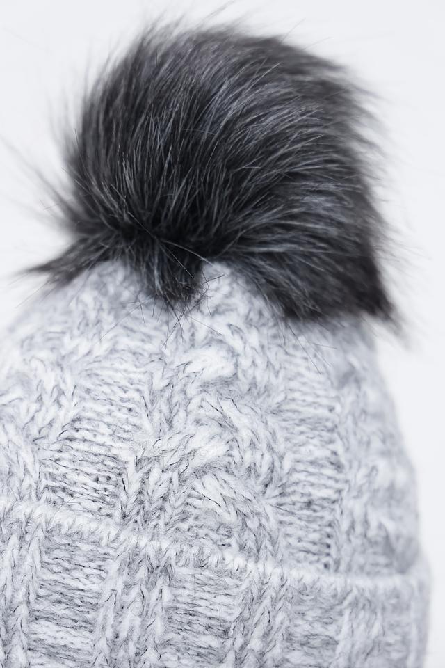 Шапка дополнена большим меховым помпоном тёмно-серого цвета, который добавляет образу игривости и очарования. Вязаная структура шапки обеспечивает хорошую воздухопроницаемость, предотвращая перегрев головы. Эта шапка станет незаменимым аксессуаром в холодное время года, согревая и защищая от ветра и мороза.