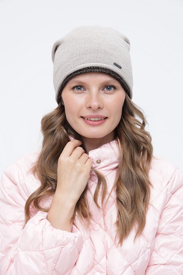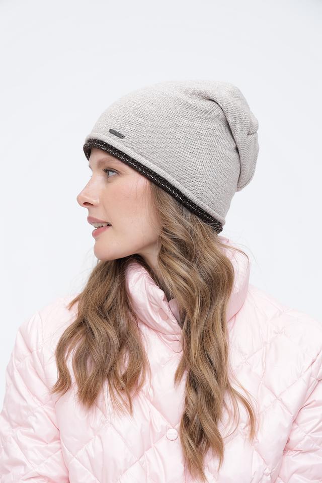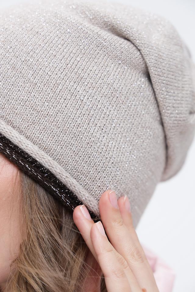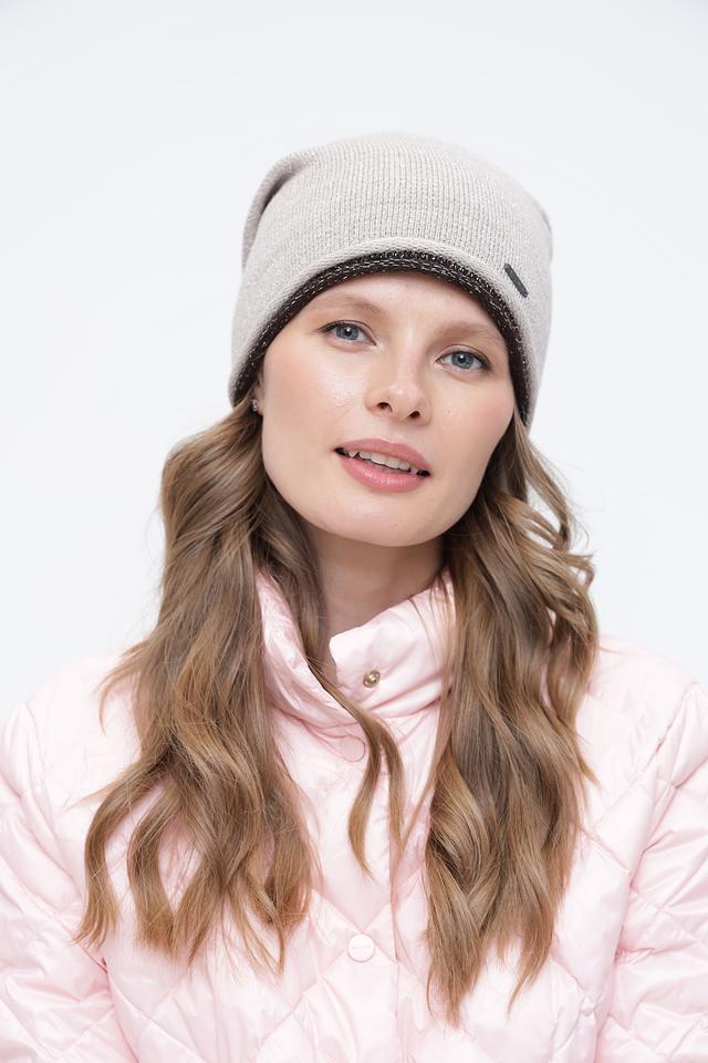 Шапка имеет классическую форму и нейтральный бежевый цвет, который легко сочетается с различными стилями одежды. Небольшой логотип бренда добавляет изысканности и узнаваемости.