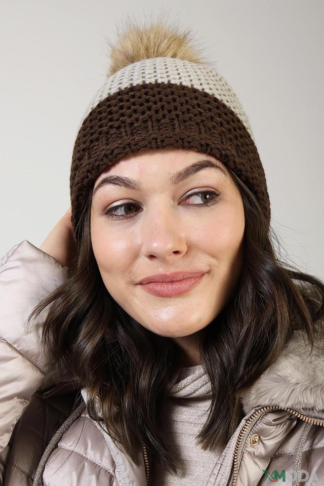 Вязаная шапка Wegener коричневого и бежевого цвета с меховым помпоном – стильный и тёплый аксессуар для зимнего сезона. Изготовлена из мягкого полиакрила, обеспечивающего комфорт и удобство в носке. Состав: полиакрил 100%