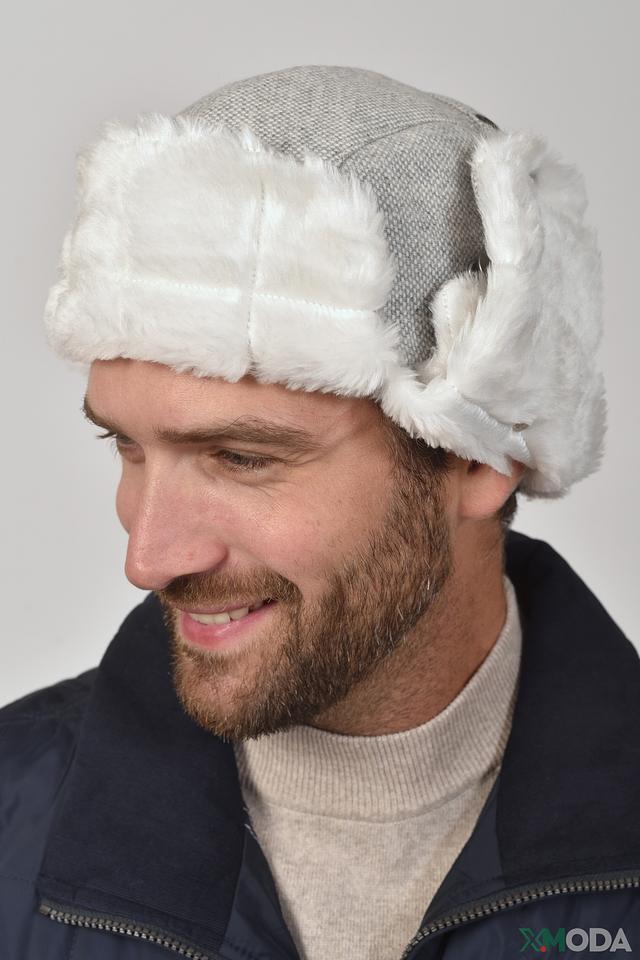 Основной материал шапки – это мягкий и приятный на ощупь серый трикотаж. Отделка из белого искусственного меха не только добавляет шапке стильный вид, но и обеспечивает дополнительную защиту от мороза. Ушки можно зафиксировать на макушке или опустить, чтобы защитить уши от ветра.