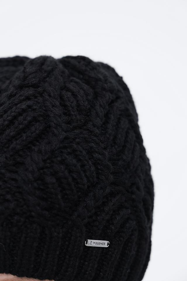 Чёрная шапка Wegener выполнена из мягкого полиакрила и украшена выразительным узором из кос. Аксессуар обеспечит комфорт и тепло в холодную погоду, а лаконичный дизайн дополнит любой образ. Состав: полиакрил 100%