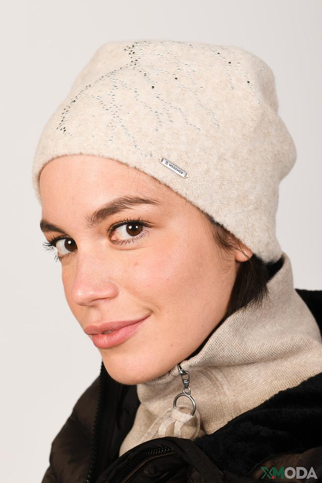 Шапка имеет приятную текстуру и деликатный блеск благодаря декоративным элементам. Бежевый цвет делает её универсальной и легко сочетаемой с различными видами верхней одежды. Аккуратный логотип бренда Wegener размещен на лицевой стороне.