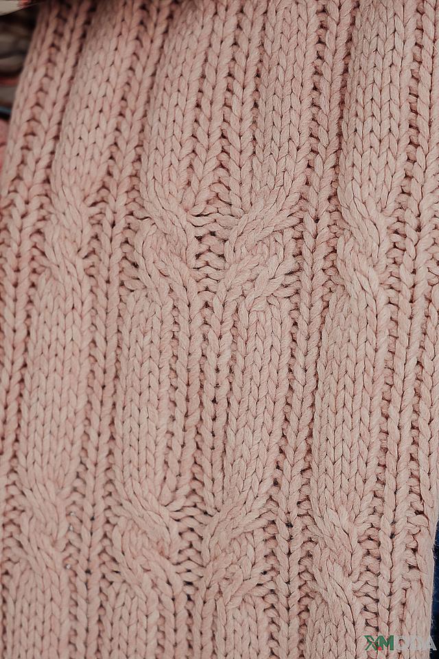 Шарф связан крупной вязкой с выразитым узором из кос, что придает ему объем и текстуру. Сочетание полиакрила и шерсти обеспечивает мягкость, тепло и долговечность изделия.