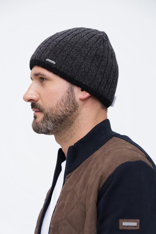 Шапка имеет классический дизайн и графитовый цвет, который легко сочетается с различными стилями одежды. Плотная вязка обеспечивает надежную защиту от ветра и холода. Небольшой металлизированный логотип бренда добавляет шапке элегантности.
