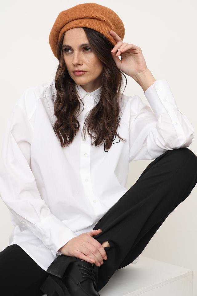 Берет имеет классическую форму и плотную вязку, обеспечивающую хорошую посадку и сохранение формы. Сочетание вискозы, полиэстера и полиамида в составе делает его мягким, приятным на ощупь и устойчивым к износу.