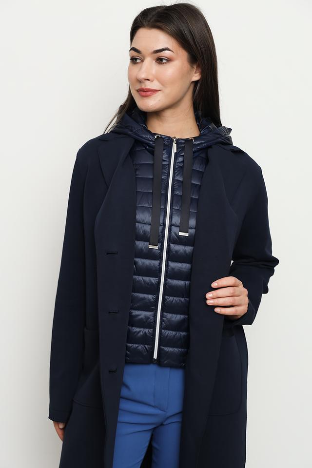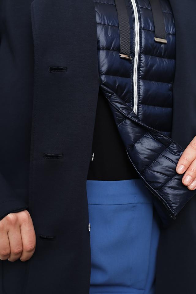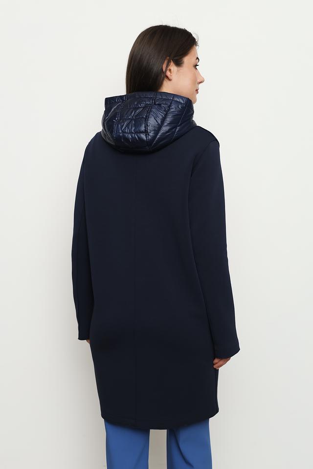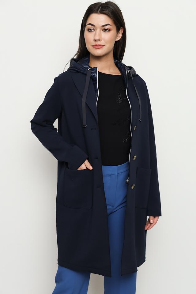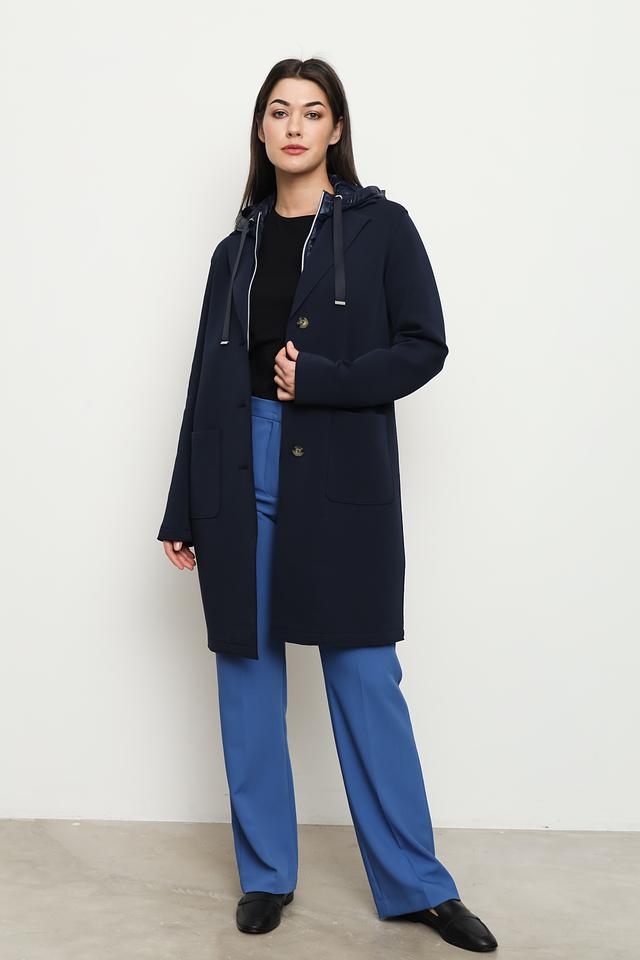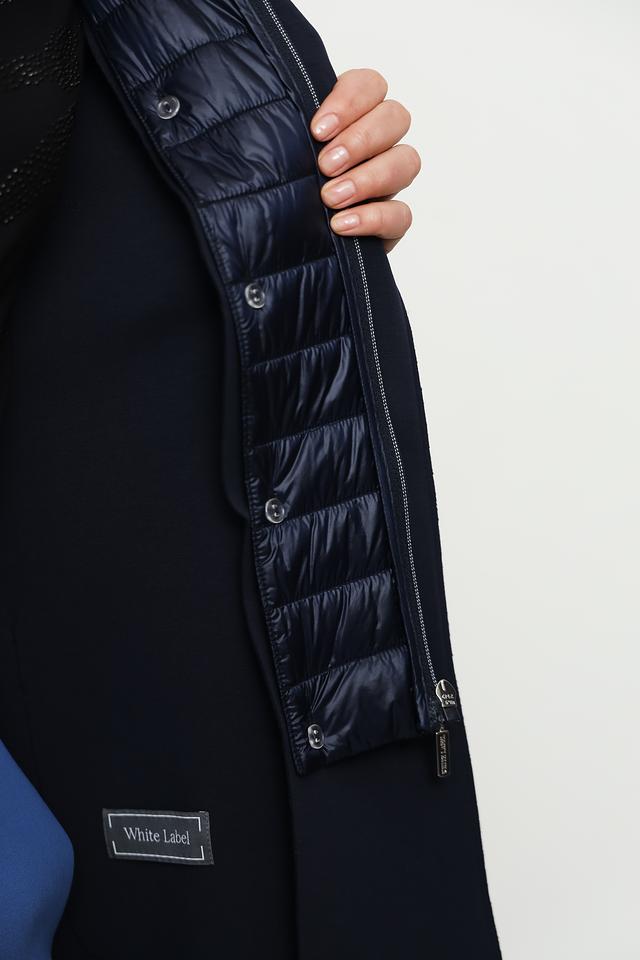 Пальто от White Label темно-синего цвета с капюшоном и застежкой на пуговицы. Модель прямого кроя с накладными карманами и подкладкой из стеганой ткани. Состав: хлопок 74%, полиэстер 21%, эластан 5%