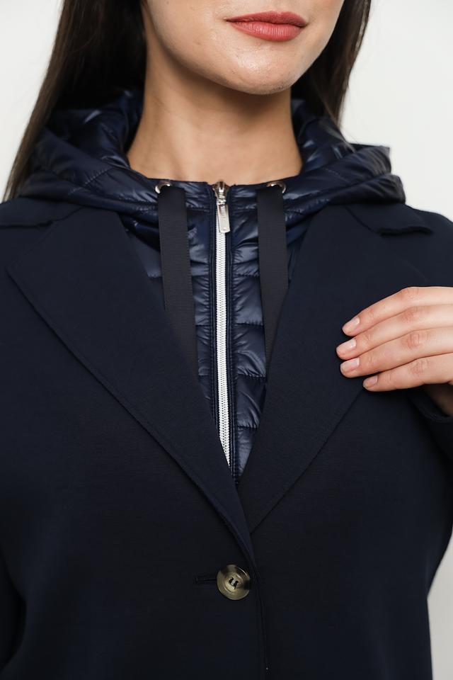 Особенностью данного пальто является капюшон со стеганой подкладкой, которая обеспечивает дополнительную защиту от ветра и холода. Состав ткани включает хлопок (74%), полиэстер (21%) и эластан (5%), что обеспечивает комфорт, износостойкость и легкий уход.