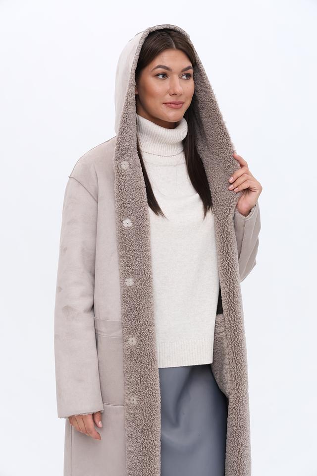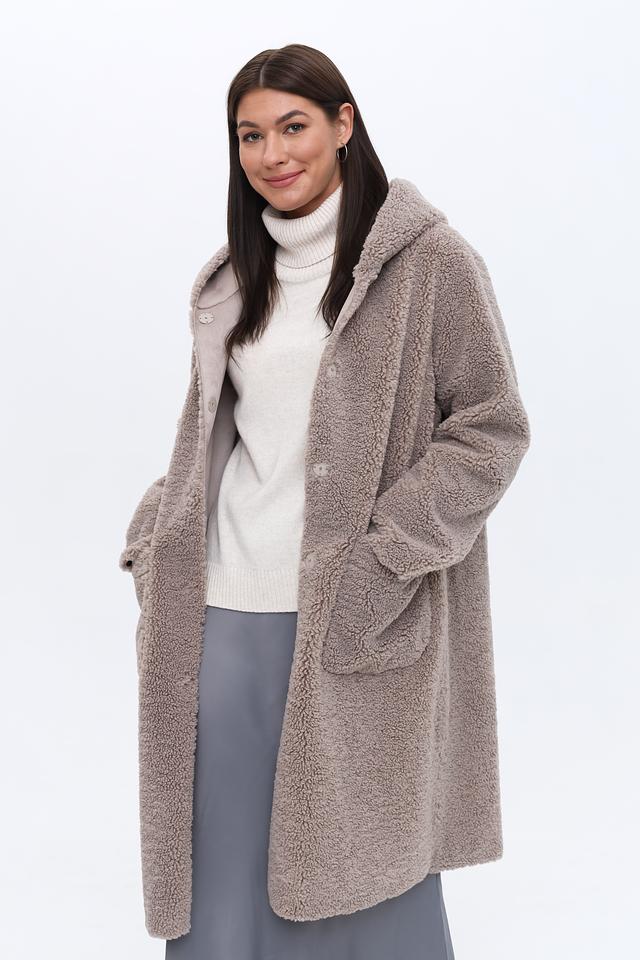 Модель отличается свободным кроем, который обеспечивает комфорт и свободу движений. Пальто застегивается на кнопки, имеет два функциональных кармана по бокам. Длина пальто позволяет создавать различные образы, сочетая его с юбками, брюками или джинсами.