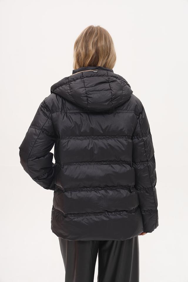 Куртка имеет стеганую текстуру, которая придает ей современный вид. Капюшон обеспечивает дополнительную защиту от непогоды, а удобная застежка на кнопки позволяет быстро и легко надевать и снимать куртку.