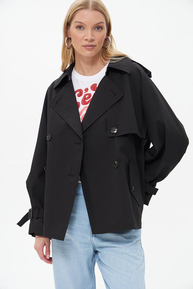 Чёрный плащ оверсайз от White Label из 100% полиэстера. Модель выполнена в классическом стиле с двубортной застёжкой и поясом. Идеальный выбор для создания стильного и комфортного образа. Состав: полиэстер 100%