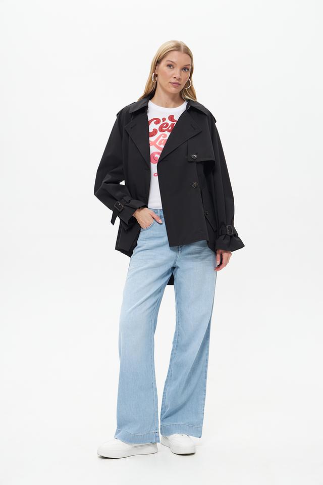 Женский плащ от White Label – это стильное и практичное решение для переменчивой погоды. Модель выполнена в классическом чёрном цвете, который легко сочетается с любым гардеробом.