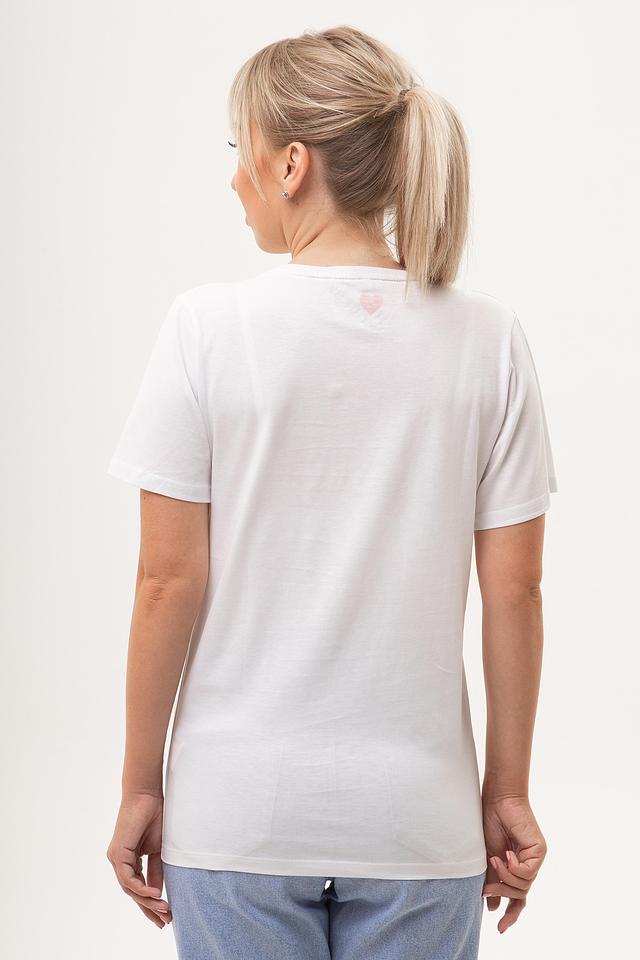 Футболка имеет классический прямой крой, который подходит для любого типа фигуры. Она идеально сочетается с джинсами, шортами или юбками, создавая стильный и непринужденный образ. Небольшой логотип бренда расположен на груди с левой стороны.