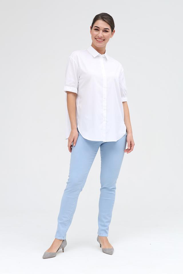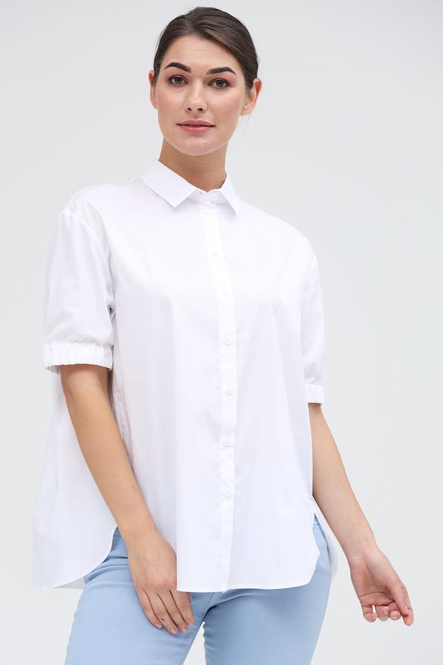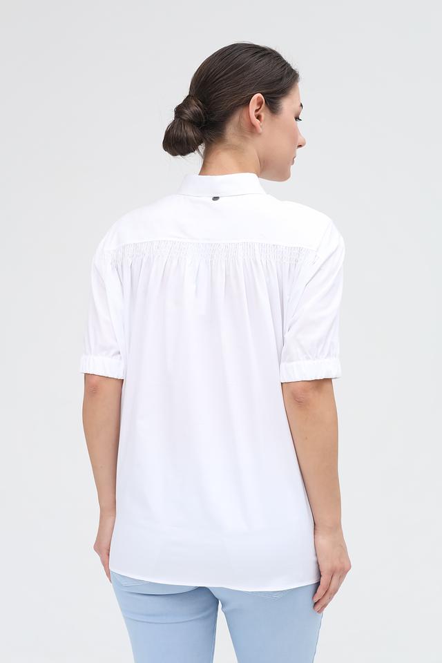 Эта рубашка идеально подойдет для создания как повседневных, так и более элегантных образов. Ее можно сочетать с джинсами, брюками или юбками. Белый цвет делает ее универсальной и легко сочетаемой с другими элементами гардероба.