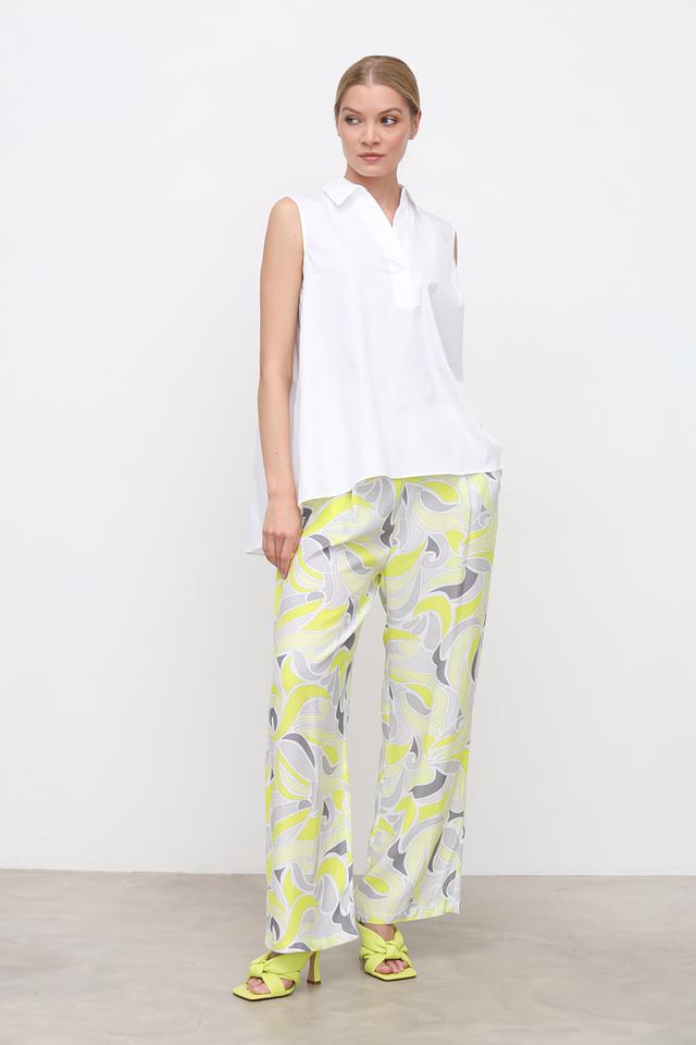 Женские брюки You Just White с оригинальным принтом в светло-зелёных, серых и жёлтых тонах станут ярким акцентом вашего образа. Модель выполнена из мягкой вискозы, обеспечивающей комфорт в носке. Состав: вискоза 100%