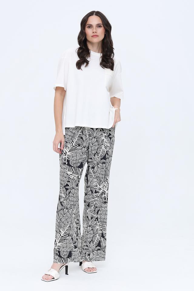 Модель имеет свободный крой, который не сковывает движения и обеспечивает свободу. Короткие рукава и круглый вырез горловины делают футболку идеальной для теплой погоды. Накладной карман на груди добавляет функциональности и оригинальности.