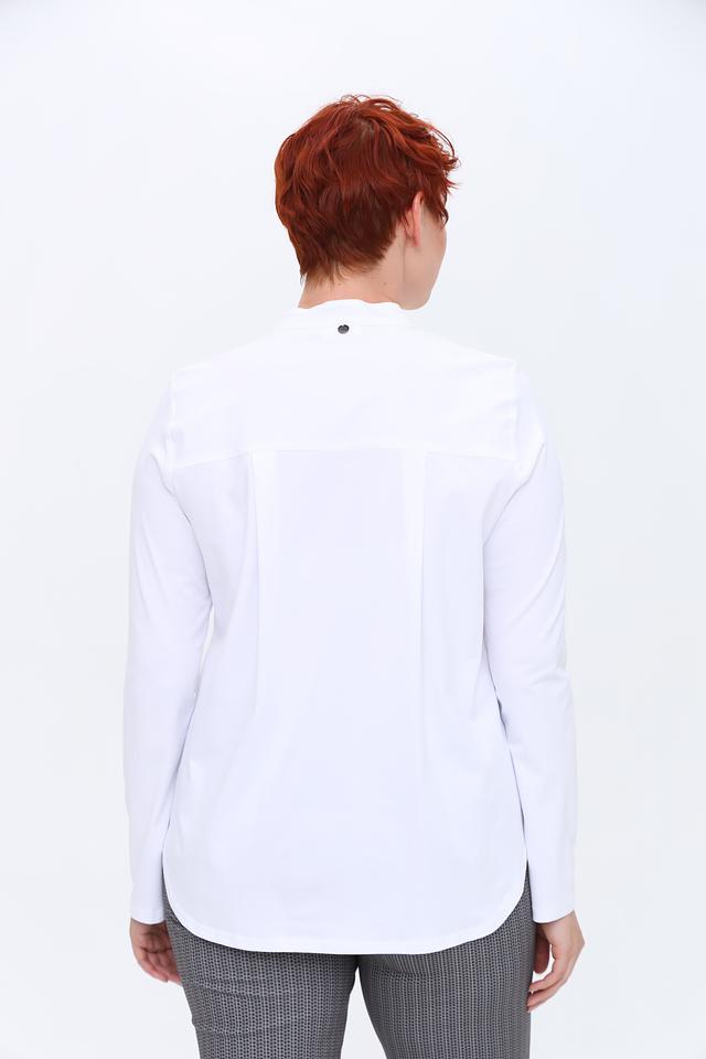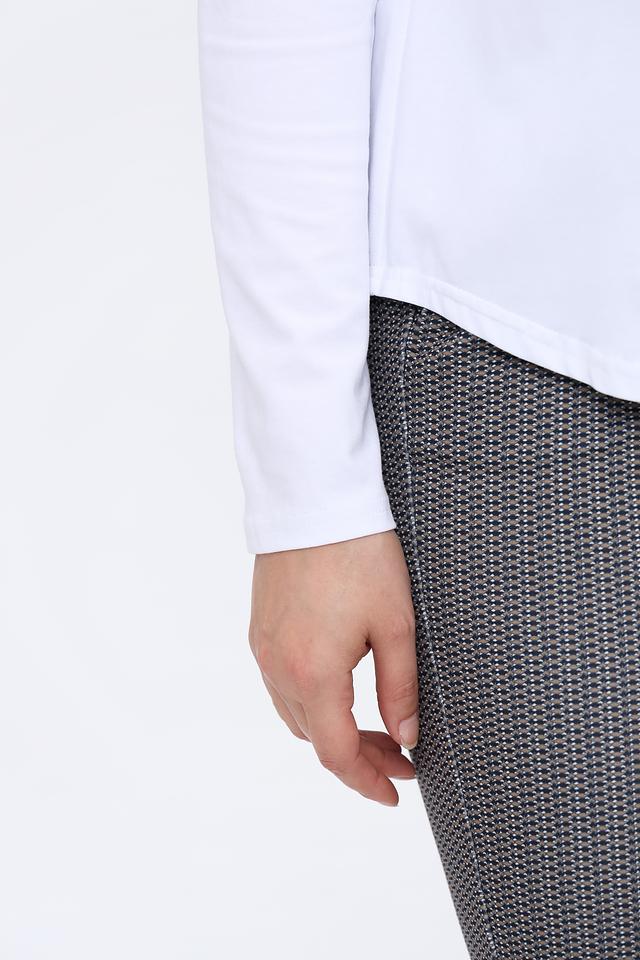 Блуза изготовлена из высококачественного хлопка (96%) с добавлением эластана (4%), что обеспечивает комфорт при носке, хорошую воздухопроницаемость и устойчивость к сминанию. Она идеально подходит для создания как повседневных, так и более формальных образов.