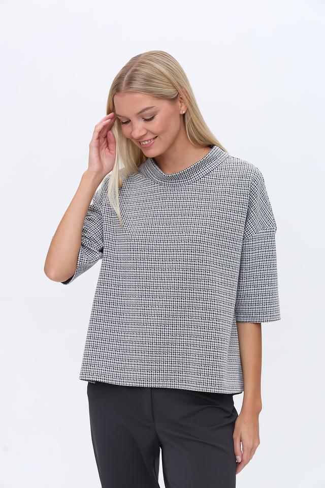 Блуза You Just White чёрно-белого цвета с короткими рукавами и округлым вырезом горловины. Изготовлена из сочетания полиэстера, вискозы и эластана, обеспечивающего комфорт и удобство в носке. Стильный крой и клетчатый принт делают эту блузу универсальным элементом гардероба. Состав: полиэстер 74%, вискоза 24%, эластан 2%