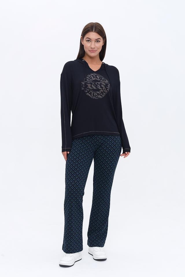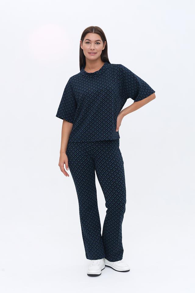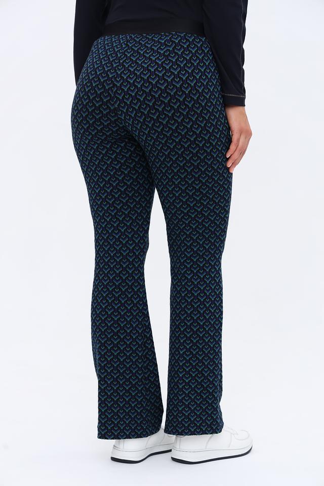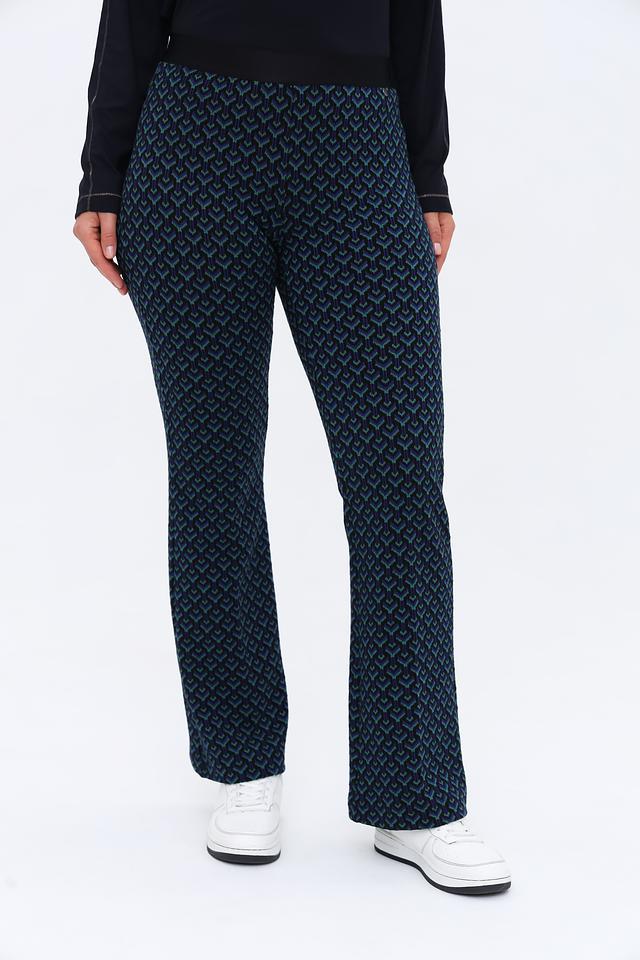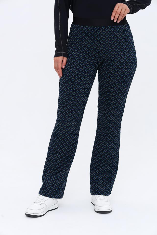 Женские брюки You Just White тёмно-синего цвета с оригинальным геометрическим принтом станут стильным дополнением к вашему гардеробу. Модель выполнена из мягкой и приятной к телу ткани, обеспечивающей комфорт в носке. Состав: полиэстер 70%, вискоза 28%, эластан 2%