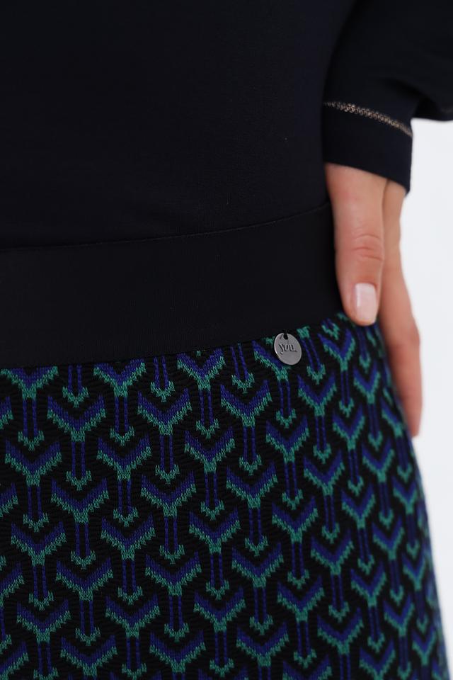 Представляем вашему вниманию стильные брюки от бренда You Just White. Эта модель выполнена в тёмно-синем цвете и украшена ярким геометрическим принтом, который придаёт образу оригинальность.