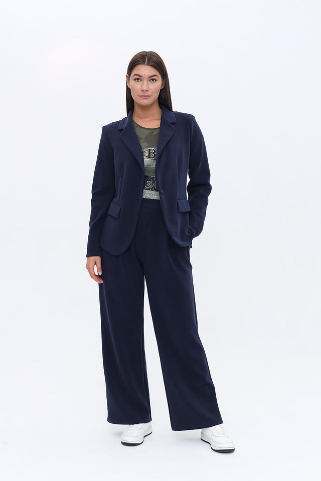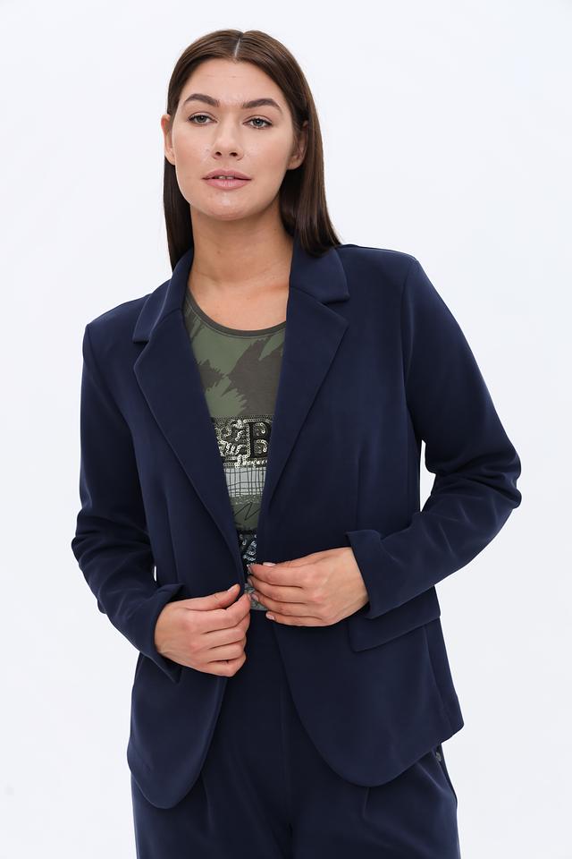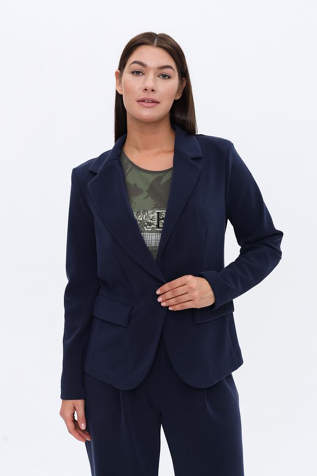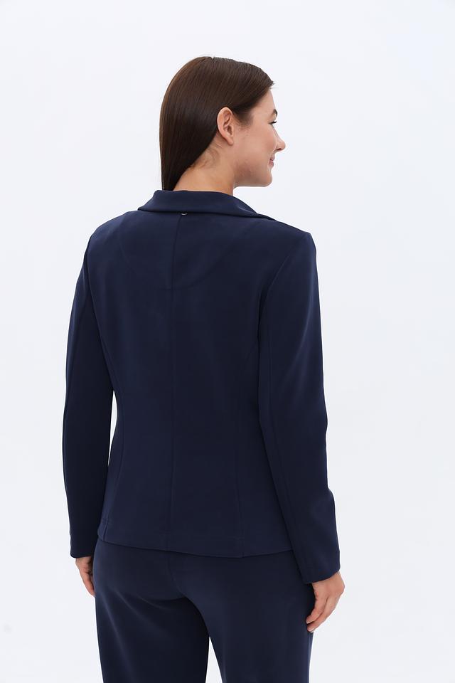 Жакет имеет классический крой с лацканами, застегивается на одну пуговицу. Длинные рукава и приталенный силуэт подчеркивают фигуру. Благодаря составу ткани (50% полиэстер, 44% модал, 6% эластан) жакет приятен к телу, хорошо держит форму и практически не мнется.