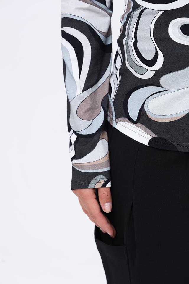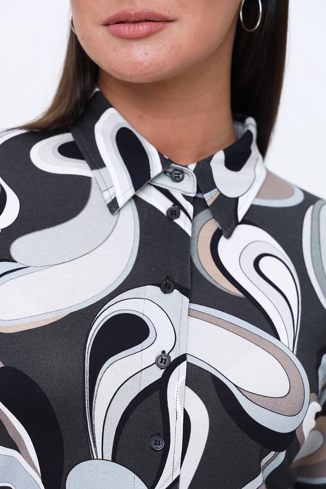 Стильная рубашка You Just White с длинным рукавом и оригинальным абстрактным принтом станет ярким акцентом вашего образа. Изготовлена из мягкой вискозы с добавлением эластана для комфорта и свободы движений. Состав: вискоза 95%, эластан 5%