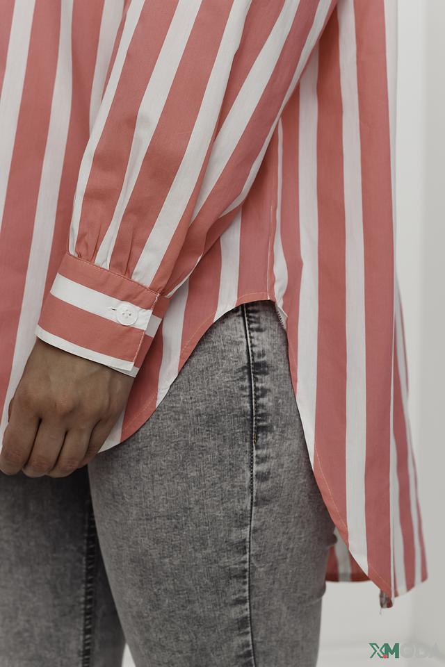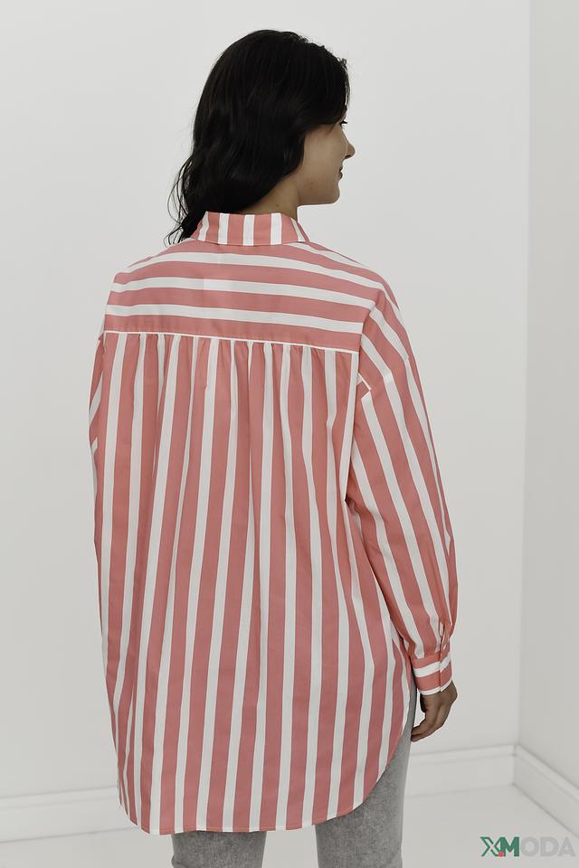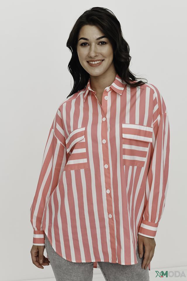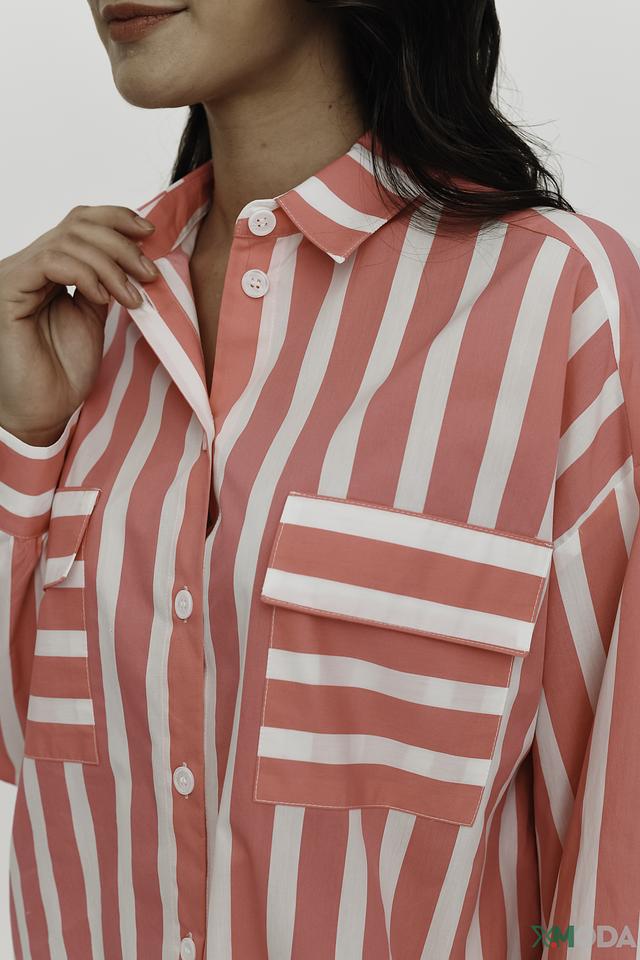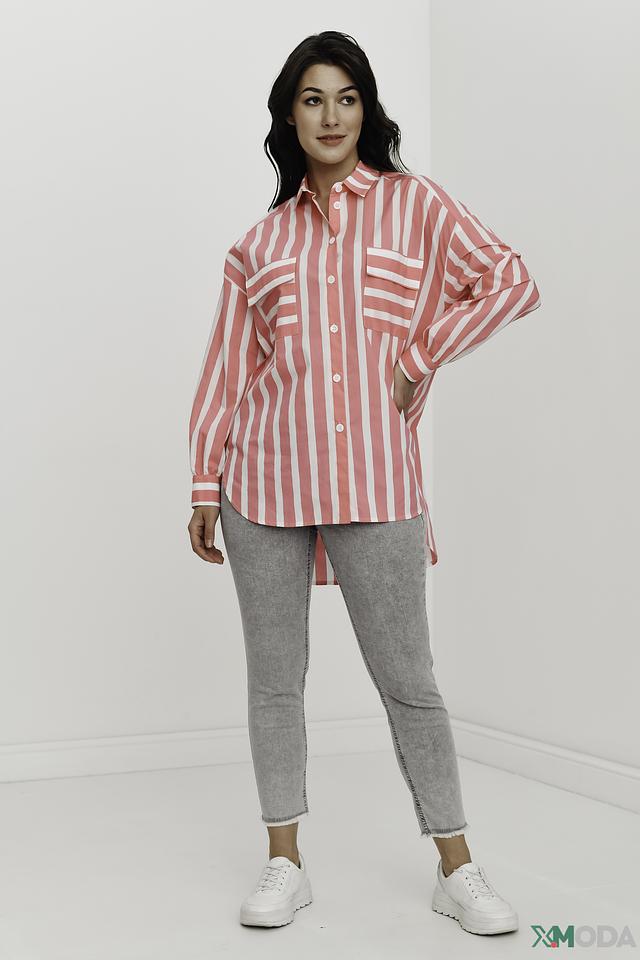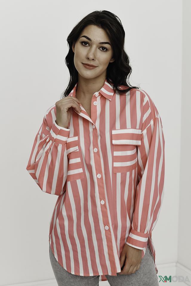 Рубашка You Just White розового цвета в белую полоску – стильный и комфортный выбор для создания повседневных образов. Модель выполнена из 100% хлопка, имеет свободный крой и длинные рукава с манжетами. Состав: хлопок 100%