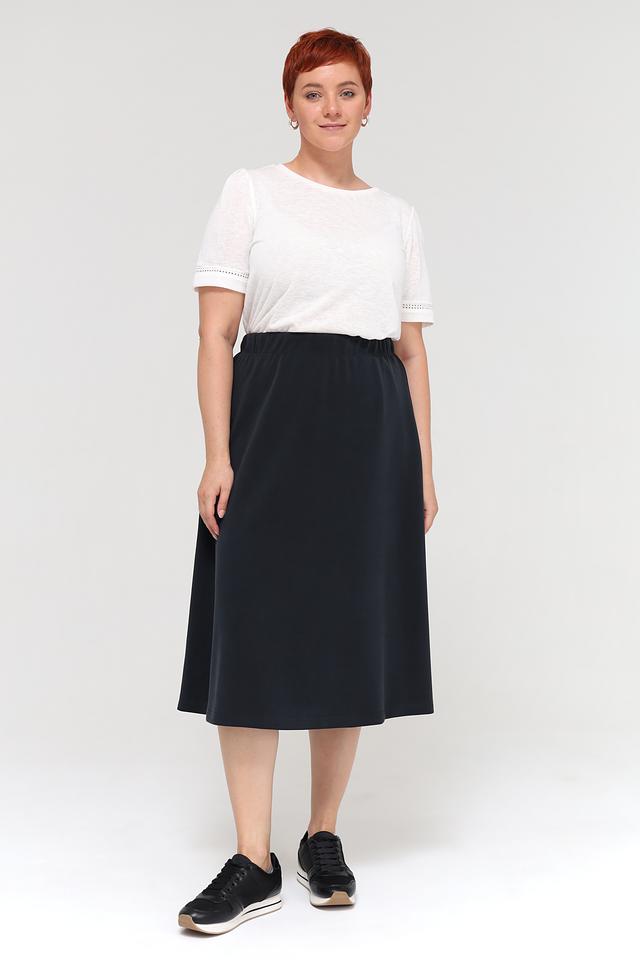 Юбка выполнена из высококачественного сочетания модала, полиэстера и эластана, что обеспечивает мягкость, комфорт и хорошую посадку. Эластичный пояс не сковывает движения и обеспечивает удобство в течение всего дня.