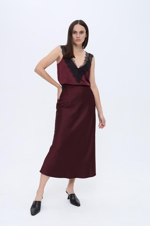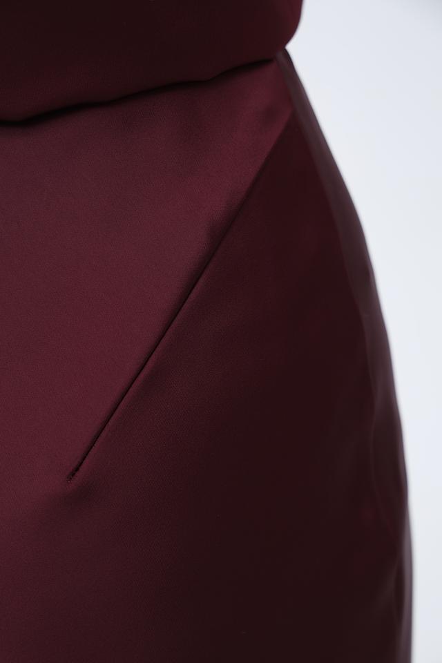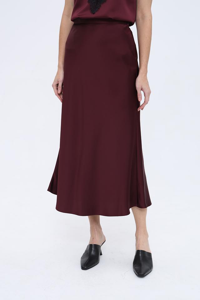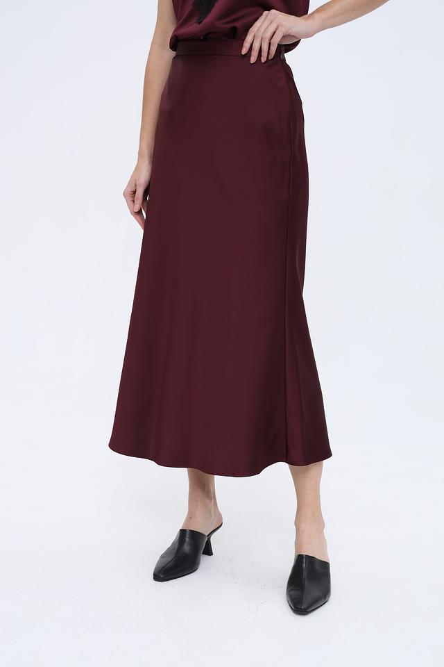 Юбка имеет классический крой и длину миди, что делает её подходящей для создания как повседневных, так и вечерних образов. Винный цвет придает изделию изысканность и элегантность.