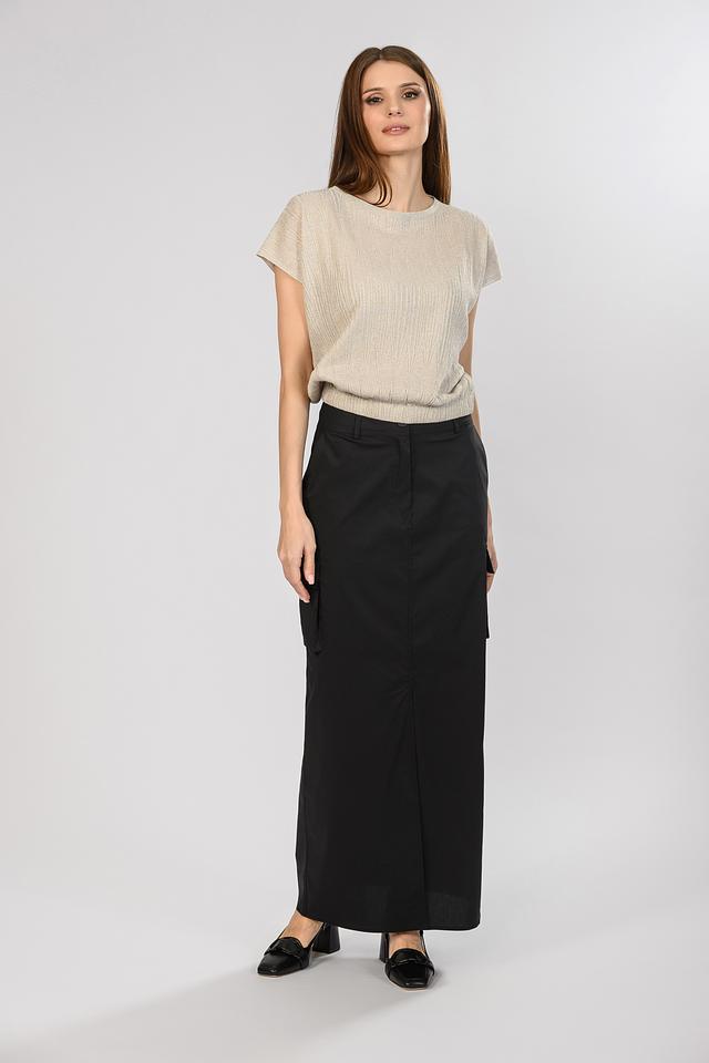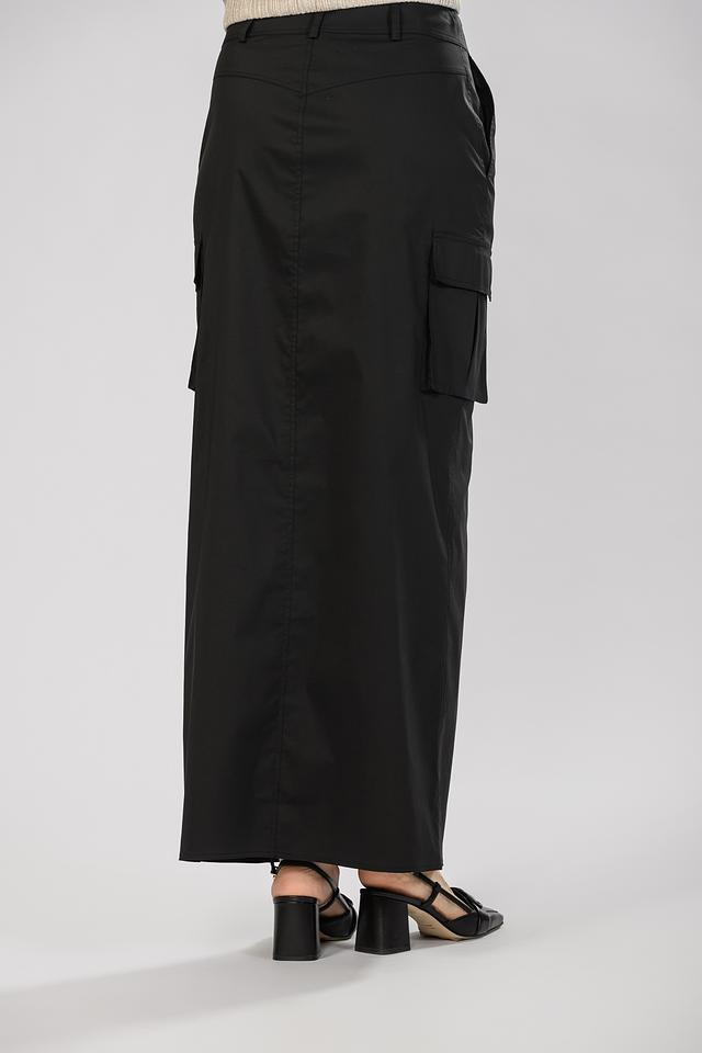 Юбка имеет прямой крой и длину макси, что делает её универсальной для разных типов фигур. Наличие функциональных карманов в стиле карго добавляет практичности и оригинальности. Изготовлена из смеси хлопка, полиамида и эластана, обеспечивающей комфорт и удобство в носке.