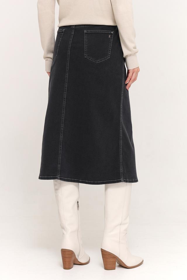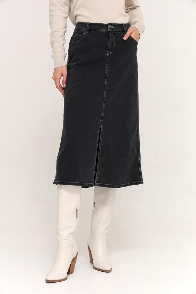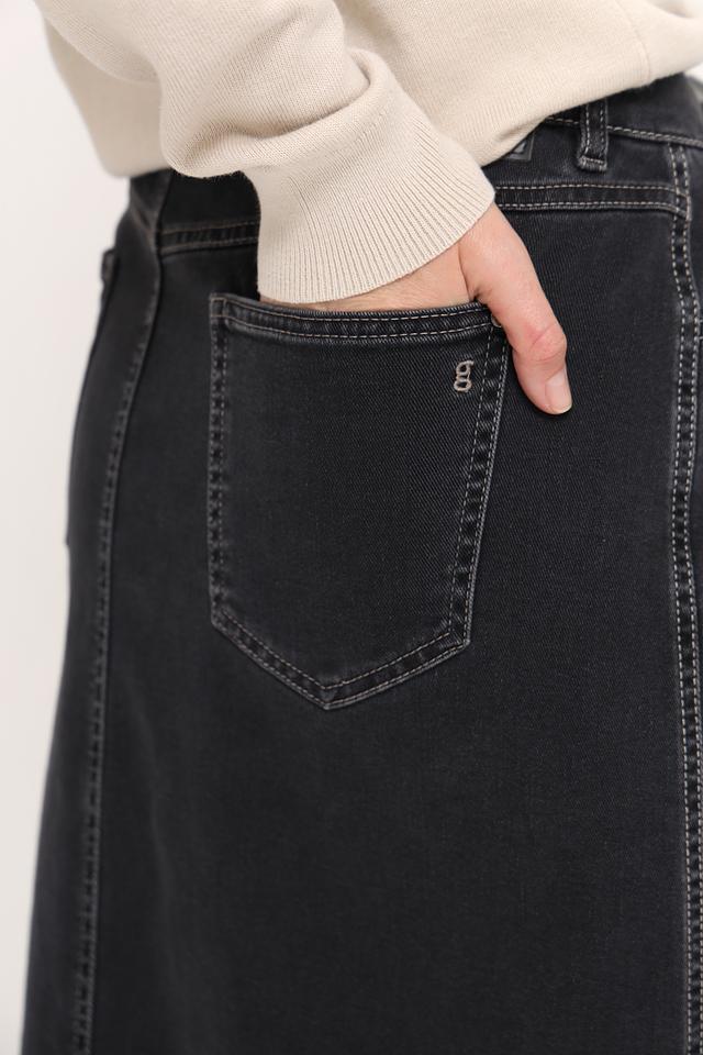 Чёрная джинсовая юбка Gardeur длиной миди с разрезом. Изготовлена из хлопка с добавлением лиоцела и эластана для комфорта и хорошей посадки. Стильный и практичный выбор для повседневного гардероба. Состав: хлопок 80%, лиоцел 15%, эластомультиэстер 3%, эластан 2%