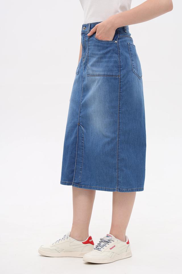 Модель дополнена функциональными карманами спереди и сзади, а также классической застежкой на пуговицу. Текстура ткани и аккуратные швы подчеркивают высокое качество исполнения. Эта юбка идеально подойдет для создания повседневных образов в стиле casual.