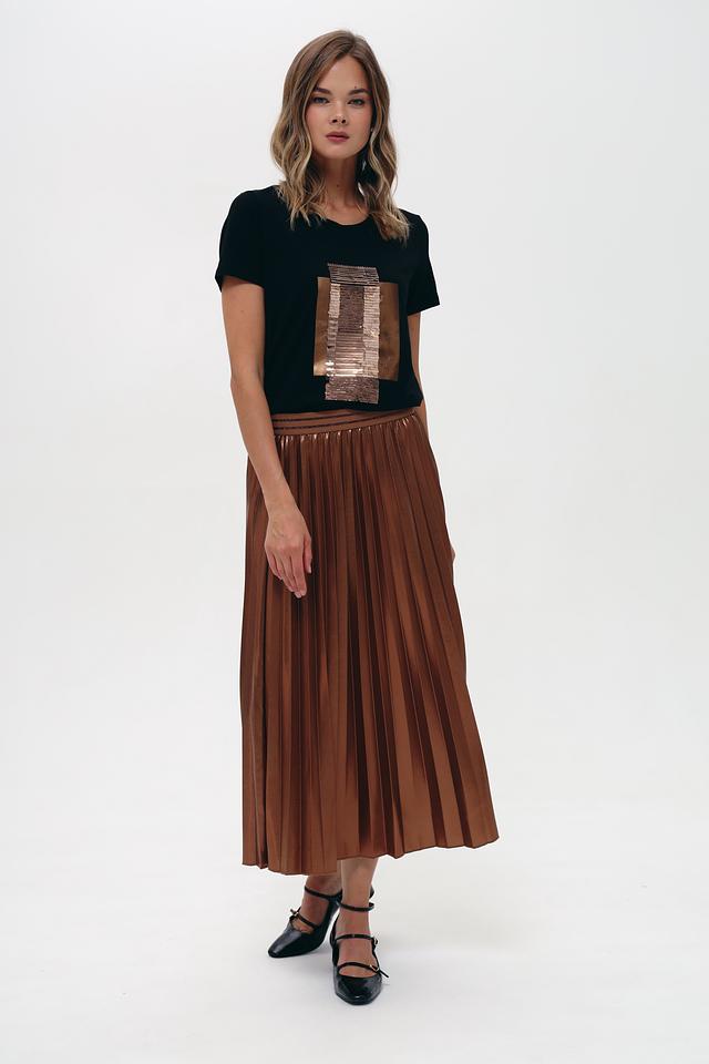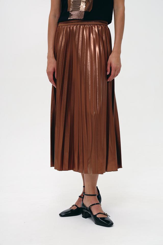Юбка Lecomte терракотового цвета – это стильная плиссированная модель длиной миди. Изготовлена из 100% полиэстера, что обеспечивает приятный блеск и лёгкость в уходе. Идеально дополнит ваш повседневный или вечерний образ. Состав: полиэстер 100%