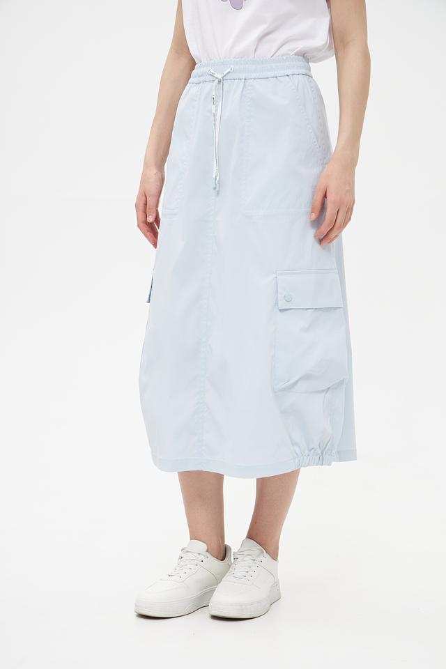 Голубая юбка Marc Cain Sports из переработанного полиэстера – стильное и комфортное решение для повседневного гардероба. Модель выполнена из лёгкой ткани и дополнена удобным поясом на шнуровке и функциональными карманами. Состав: переработ.полиэстер 63%, полиэстер 37%