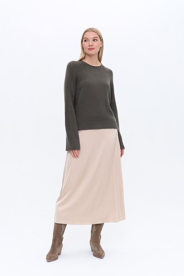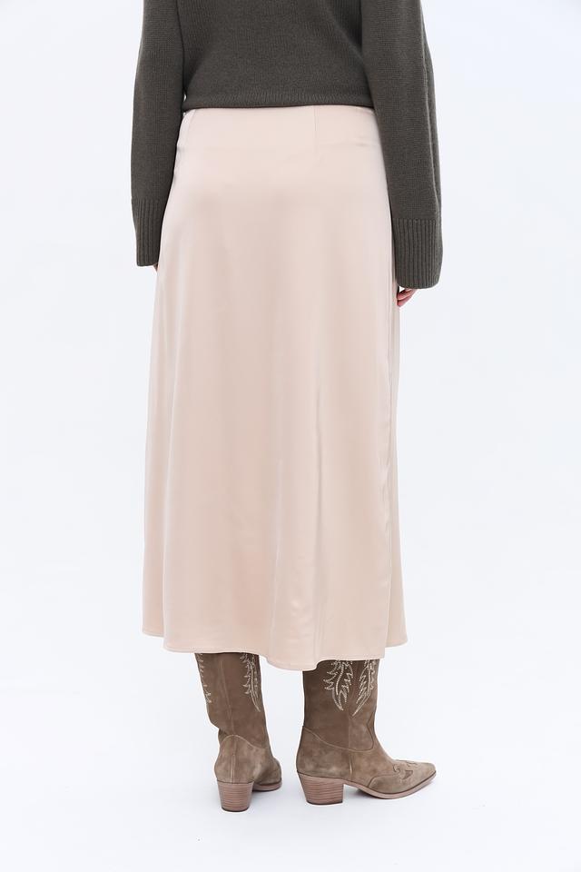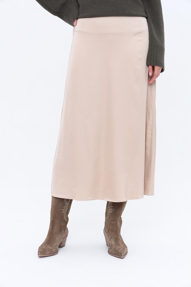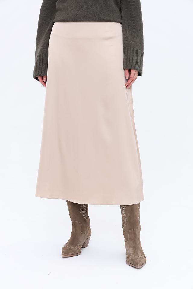 Юбка имеет прямой крой и длину миди, что делает ее универсальной и подходящей для различных случаев. Бежевый цвет юбки легко сочетается с другими элементами одежды, позволяя создавать разнообразные образы.