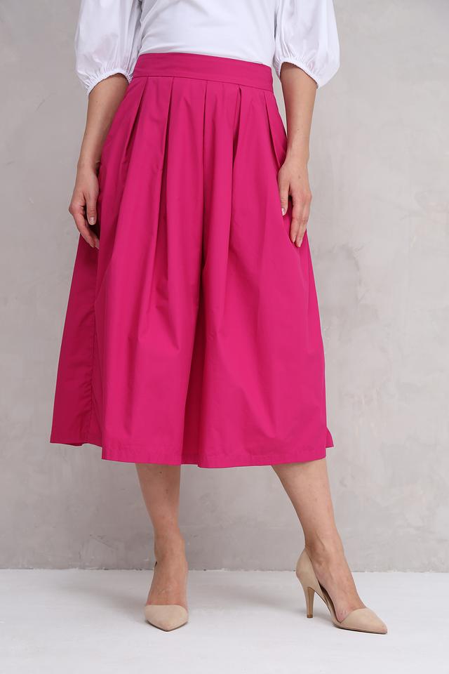 Яркий фуксиевый цвет и плиссированная фактура делают эту юбку отличным выбором для создания стильных и запоминающихся образов. Модель имеет классическую длину миди и удобную посадку по фигуре.