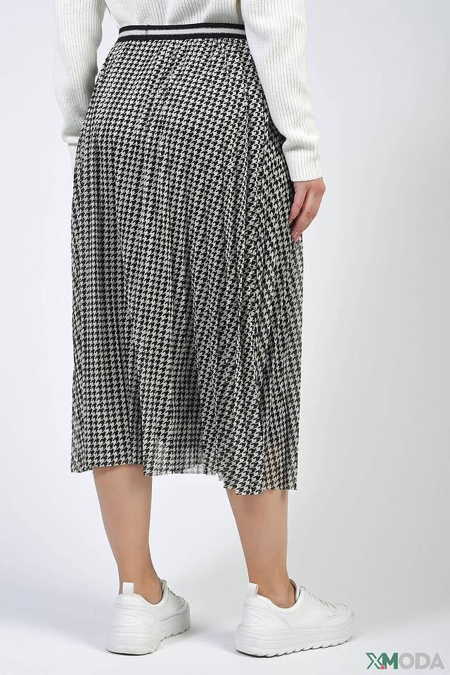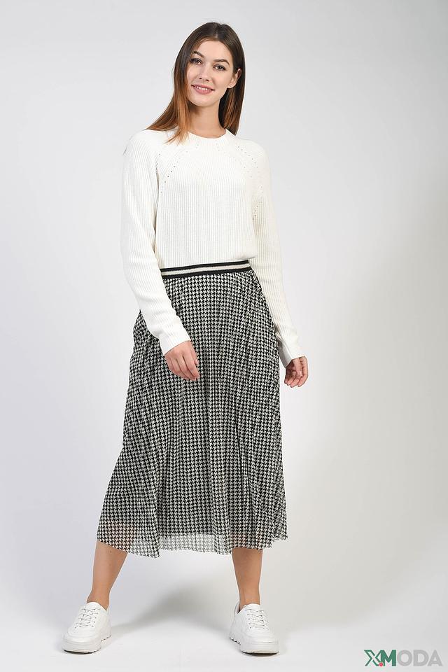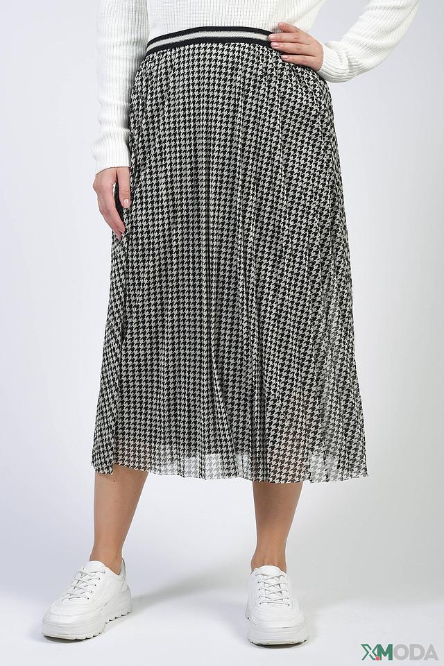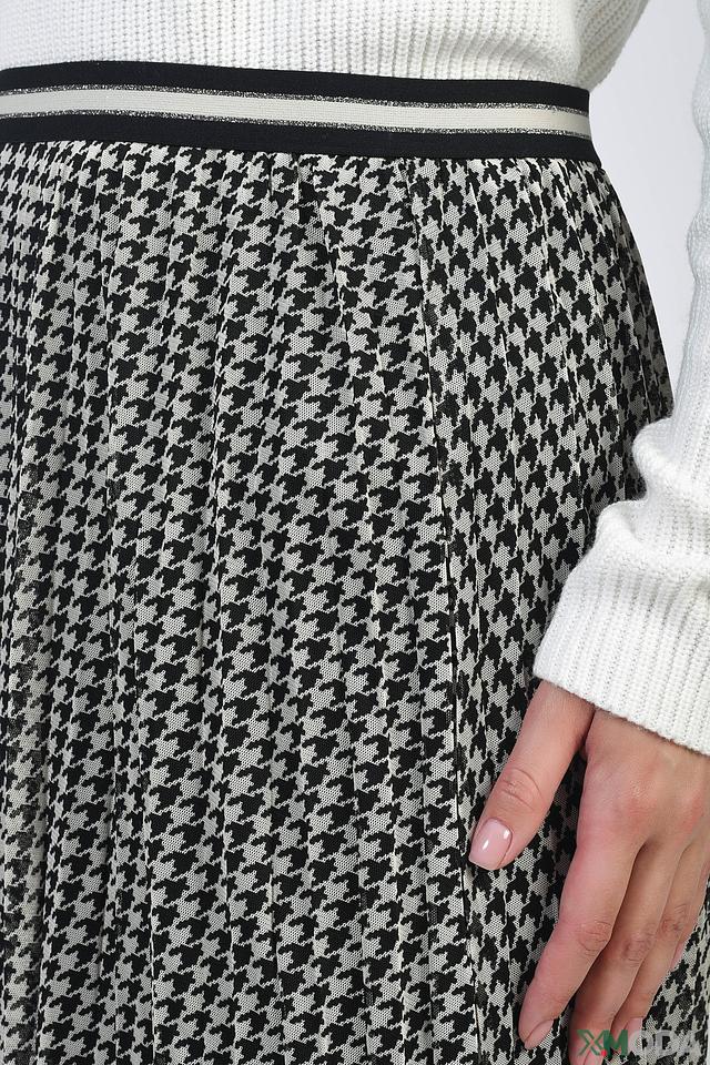 Юбка от бренда Oui черного и белого цвета, выполнена в клетку "гусиная лапка" и имеет плиссированную юбку. Модель дополнена эластичным поясом с контрастной полосой. Состав: полиэстер 100%, Состав_подкладка полиамид 95%, Состав_подкладка эластан 5%