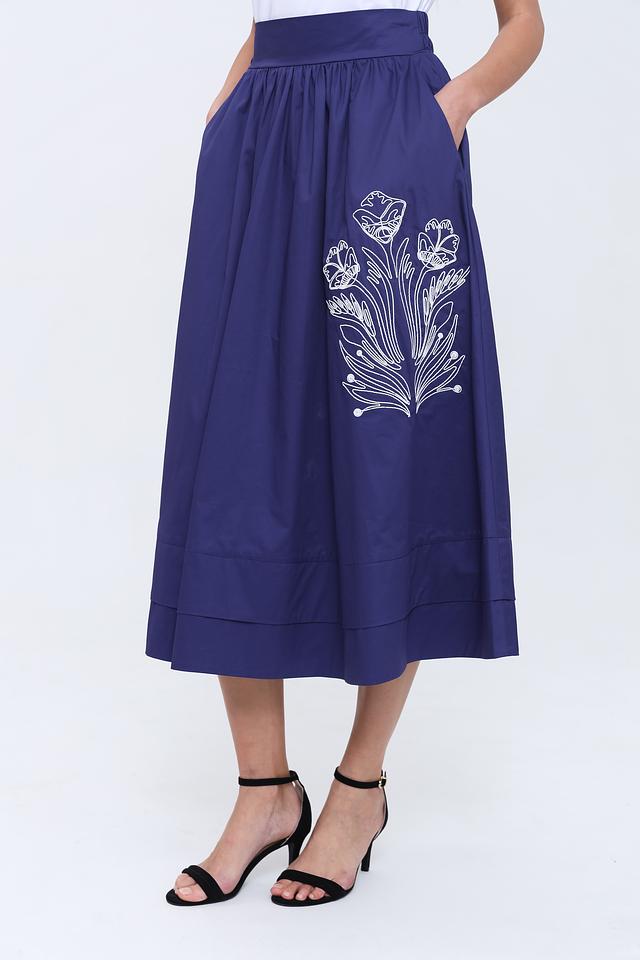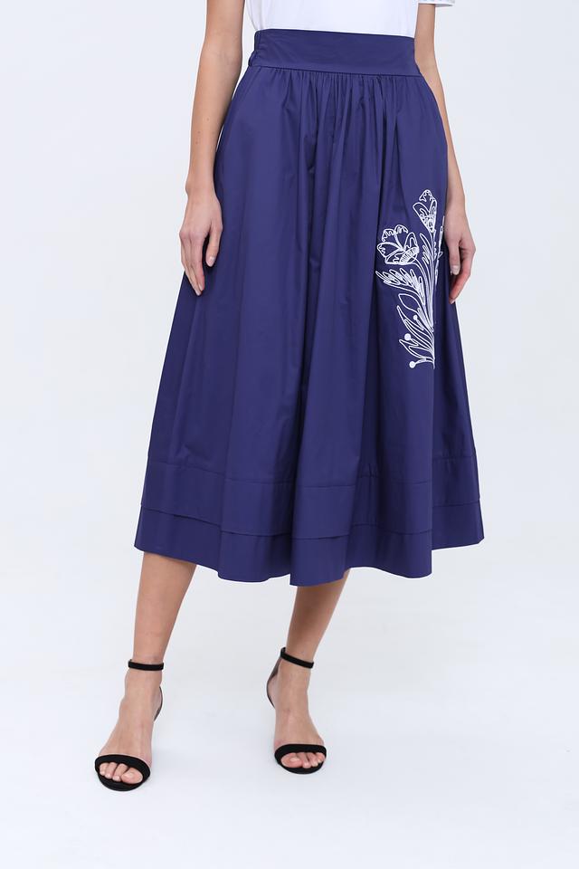 Синяя юбка Pezzo из хлопка с цветочной вышивкой – стильное и комфортное решение для создания женственного образа. Юбка имеет длину миди и удобную посадку. Состав: хлопок 100%