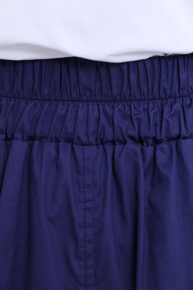 Модель имеет длину миди, свободный крой и эластичный пояс на талии, обеспечивающий удобную посадку. Юбка дополнена боковыми карманами.