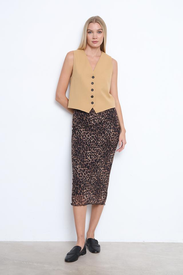 Юбка Rich and Royal в леопардовый принт – это стильная и эффектная модель миди длины. Изготовлена из лёгкой и полупрозрачной ткани, что придаёт ей изысканность и воздушность. Идеально дополнит ваш повседневный или вечерний образ. Состав: полиэстер 100%