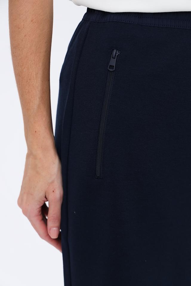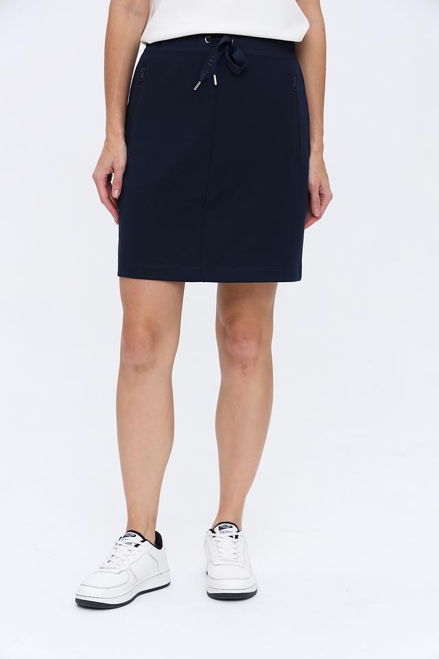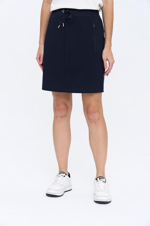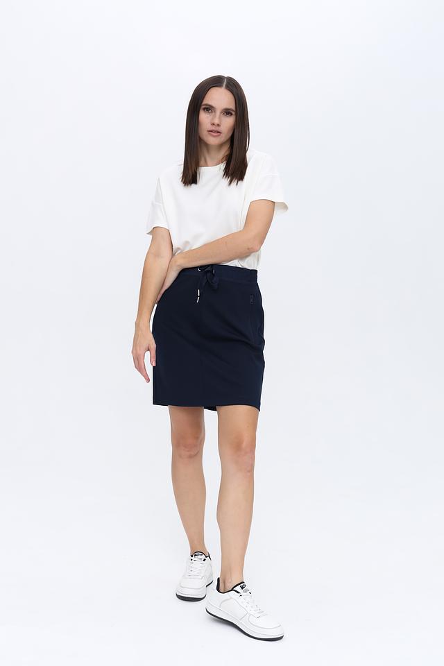 Юбка имеет прямой крой и длину до колена, что делает ее универсальной для разных типов фигуры. Удобный пояс на завязках обеспечивает комфортную посадку и позволяет регулировать облегание. Боковые карманы добавляют практичности и функциональности.