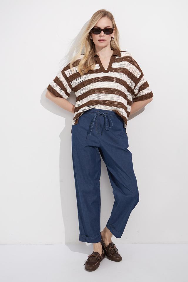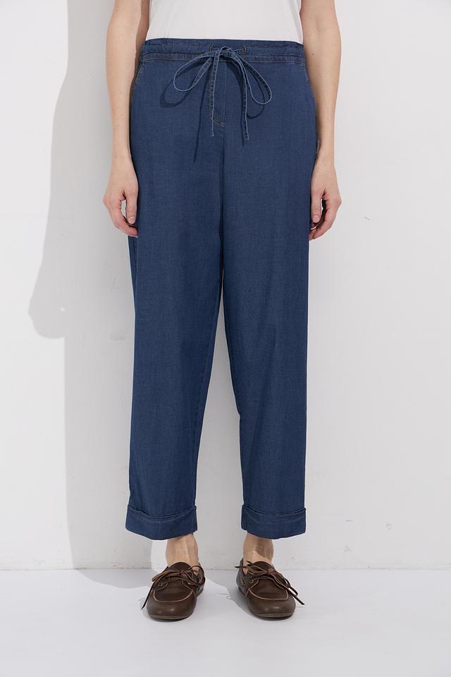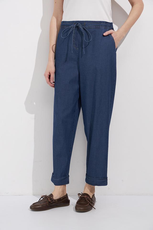 Удобный пояс на завязках позволяет регулировать посадку по фигуре. Брюки идеально подойдут для создания повседневных образов, сочетаясь с различными топами и обувью. Состав: хлопок 98%, эластан 2%.