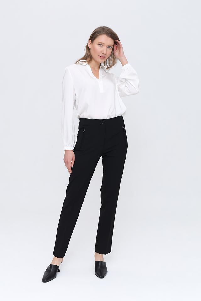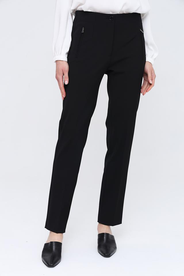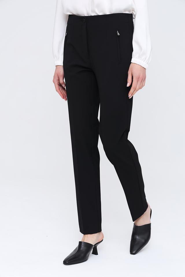 Застежка на молнию и пуговицу, а также боковые карманы делают брюки практичными и функциональными. Минималистичный дизайн позволяет сочетать их с различными видами блузок, рубашек и жакетов. Эти брюки идеально подойдут для офиса, деловых встреч или повседневной носки.