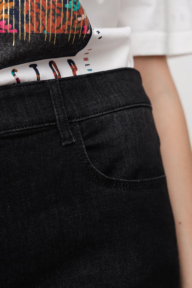 Джинсы имеют прямой крой, который обеспечивает комфортную посадку по фигуре и не сковывает движения. Пояс средней высоты и классическая застёжка на пуговицу и молнию. Пять карманов – два спереди, два сзади и один небольшой карман для мелочи.