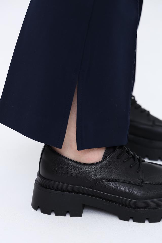 Детали кроя включают в себя аккуратные вытачки, которые подчеркивают фигуру, и классическую застежку на пуговицу и молнию. Брюки имеют небольшие разрезы по низу штанин, что придает им современный вид. Данная модель идеально подойдет для создания как деловых, так и повседневных образов.