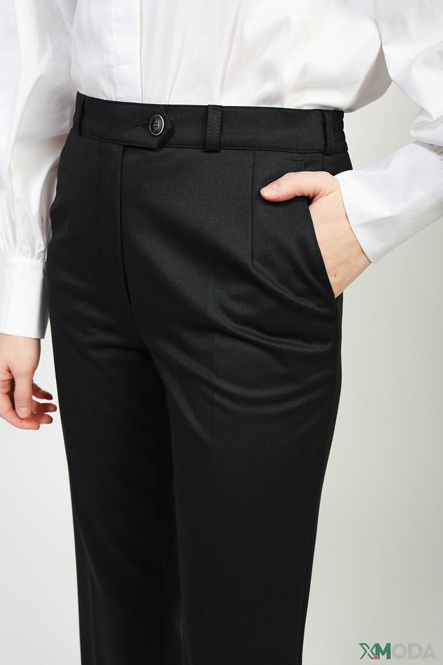 Состав ткани: 48% полиэстер, 48% вискоза, 4% эластан. Такое сочетание материалов обеспечивает приятные тактильные ощущения, хорошую износостойкость и легкий уход. Брюки отлично сохраняют форму и не мнутся.