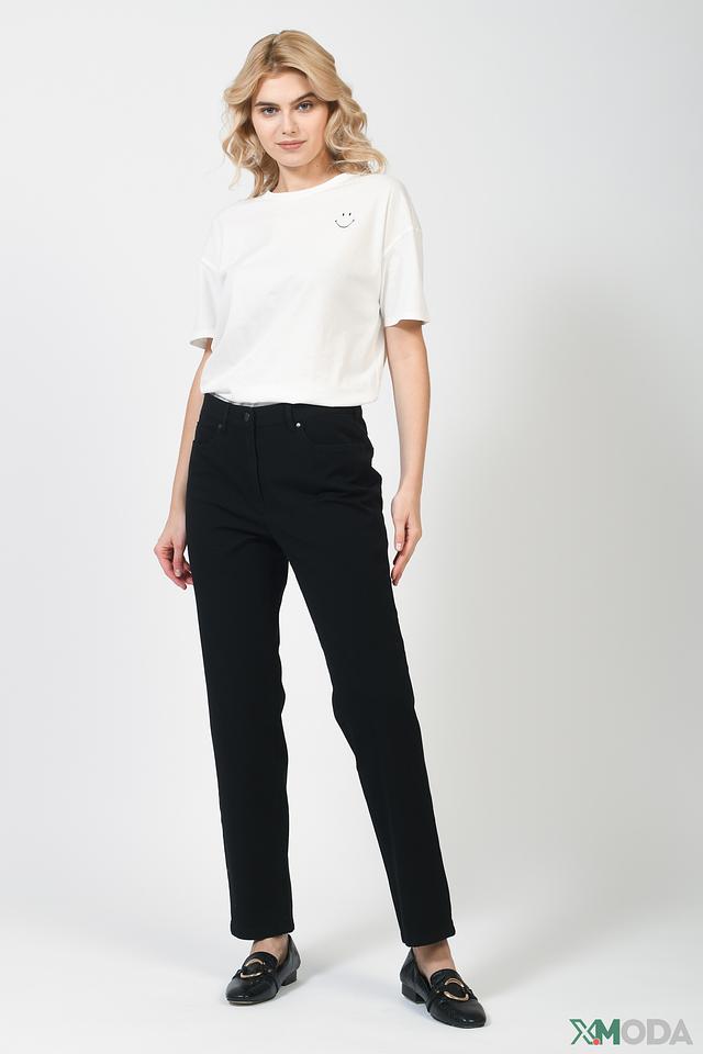 Джинсы имеют прямой крой, который визуально вытягивает силуэт и обеспечивает комфорт при носке. Высокая посадка подчеркивает талию и создает элегантный образ.