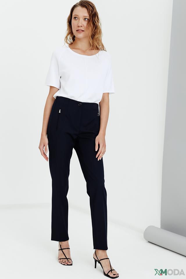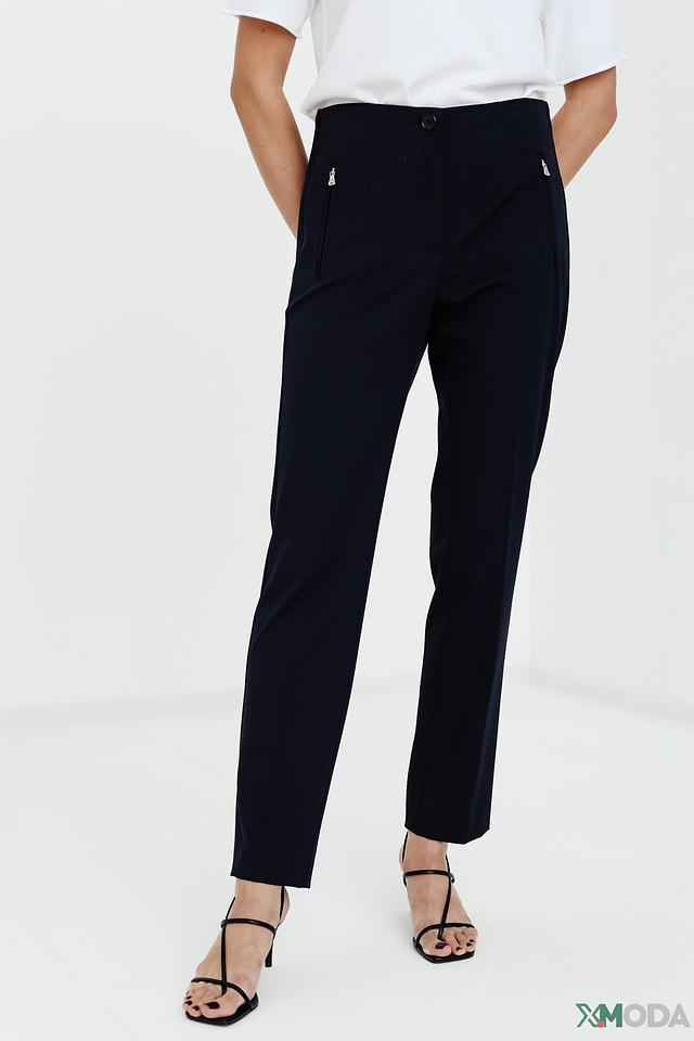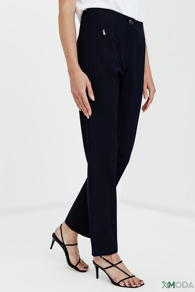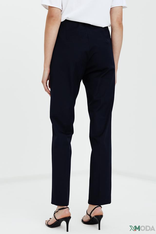Цвет брюк – насыщенный темно-синий. Модель имеет прямую посадку, стандартную длину и застежку на пуговицу и молнию. На брюках предусмотрены боковые карманы. Элегантный дизайн и универсальный цвет делают эти брюки незаменимым элементом вашего гардероба.
